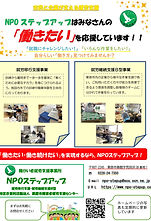 障がい者就労支援事業所「NPOステップアップ」は、障害者総合支援法に基づく就労移行支援事業および就労継続支援(B型)事業を行っています。
